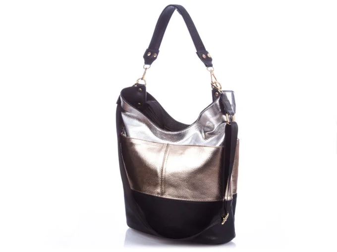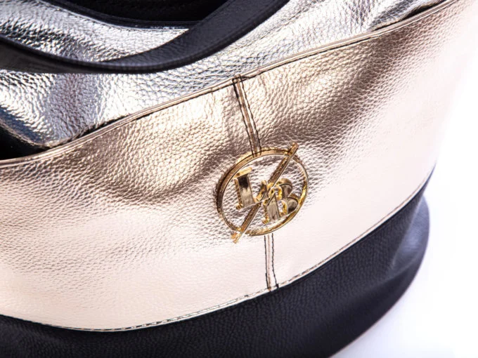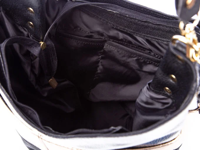 • Trzykolorowa, srebrno, złoto, czarna torebka damska marki Laura Biaggi.