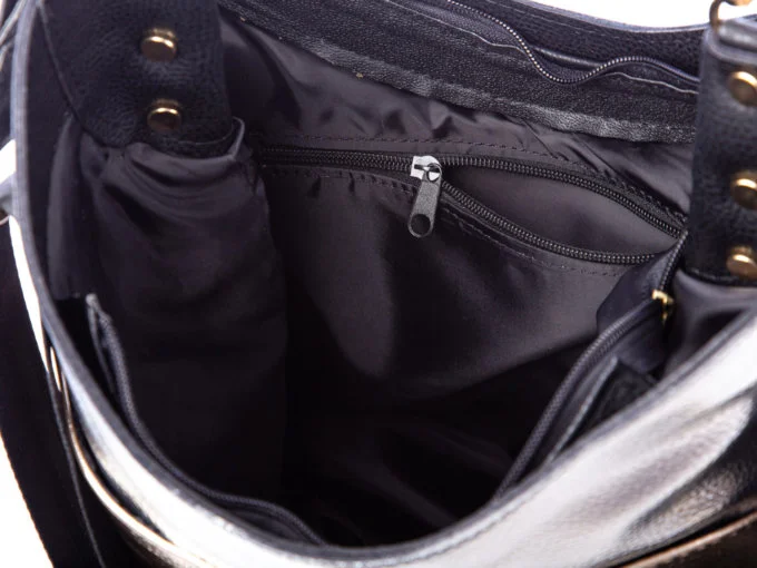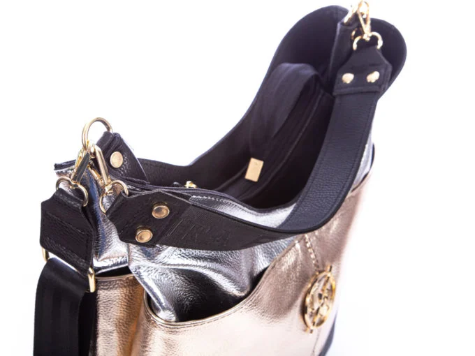 Srebrno, złoto, czarna torebka damska Laura Biaggi błyszcząca