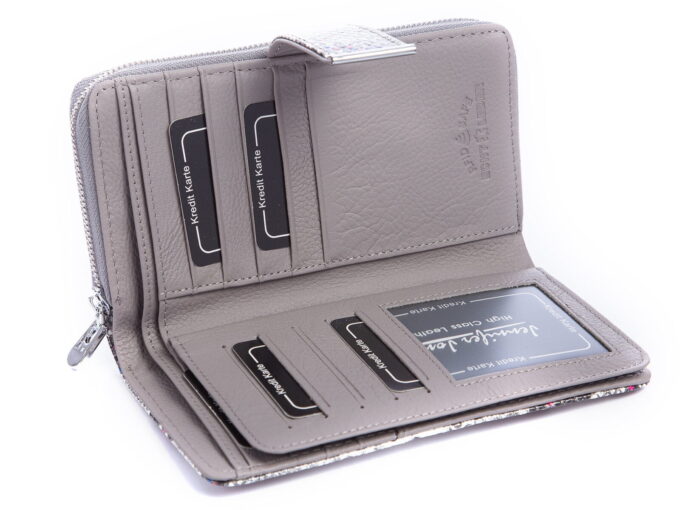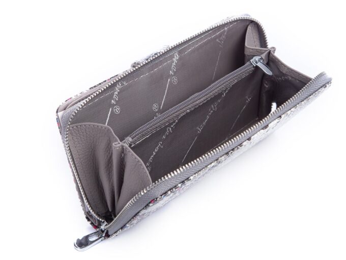 - Posiada kieszonkę na bilon z trzema przegródkami, zamykaną na zamek błyskawiczny.