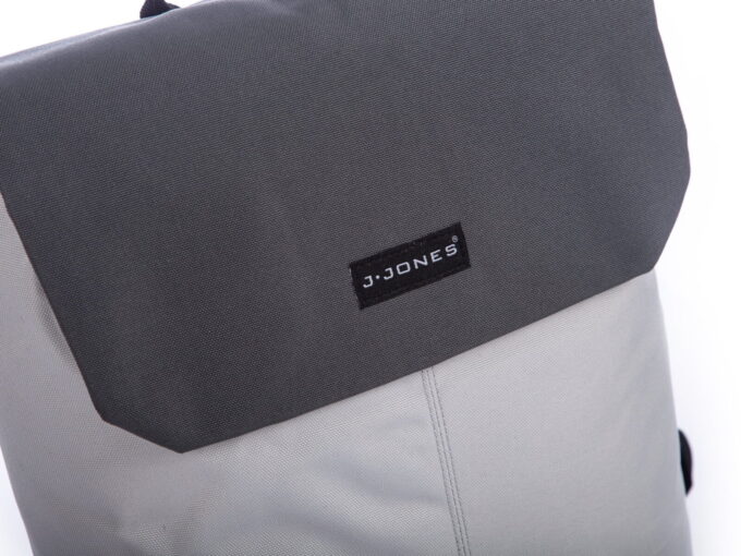 • Jasnoszary plecak niemieckiej marki J Jones z miejscem na laptopa.