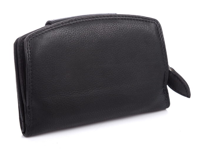 - Skórzany portfel damski średniej wielkości w kolorze czarnym.