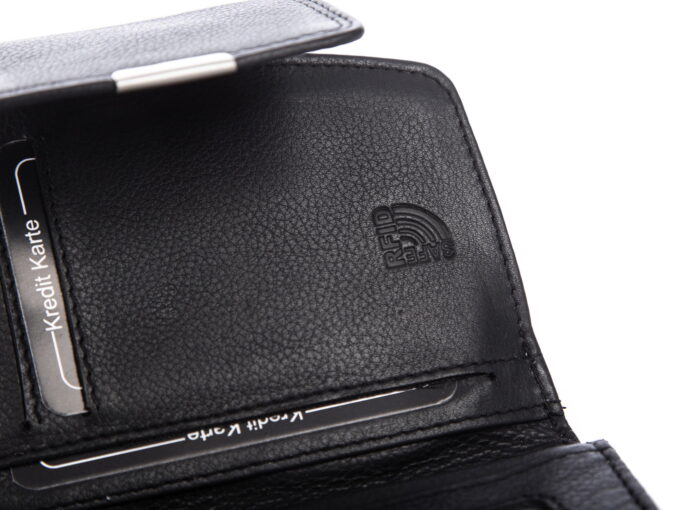 - Z ochroną kart płatniczych, zbliżeniowych RFID. Karty zbliżeniowe są bezpieczne wewnątrz portfela, dzięki specjalnej membranie wszytej w jego strukturę. Blokuje ona sygnał i chroni karty przed dostępem z zewnątrz.