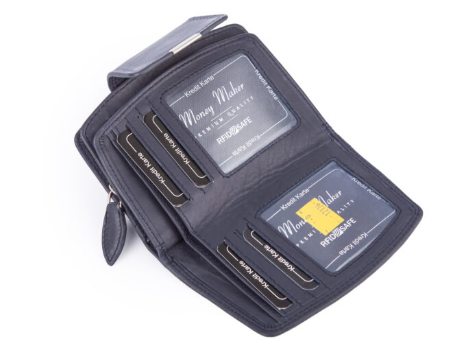 • Średni skórzany portfel damski RFID granatowy Money Maker