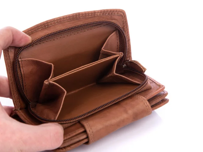 - Kieszeń na bilon dzielona na dwie części i zapinana dookoła na szczelny zamek błyskawiczny.