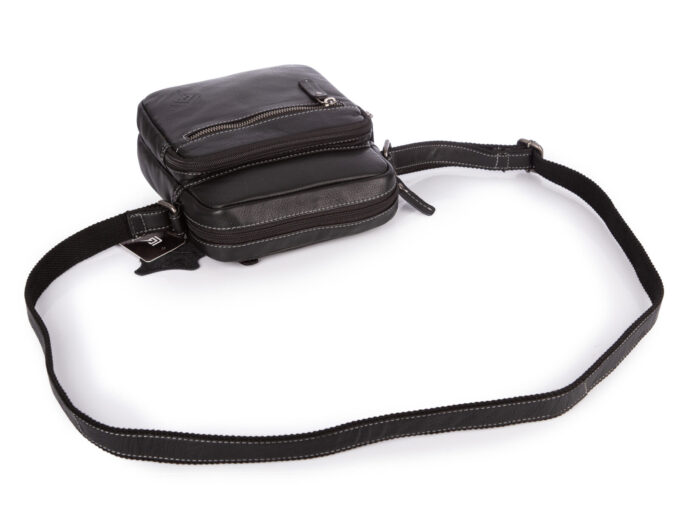 Czarna, mała skórzana saszetka męska na ramię na co dzień Paolo Peruzzi