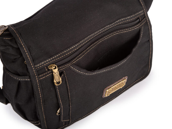 - Pod klapą, z przodu torby znajduje się pozioma kieszeń zamykana na suwak.