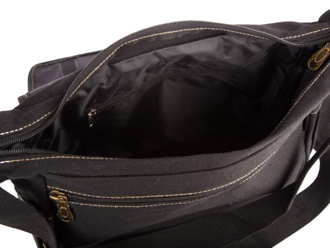 - Pod klapą, z przodu torby znajduje się pozioma kieszeń zamykana na suwak.