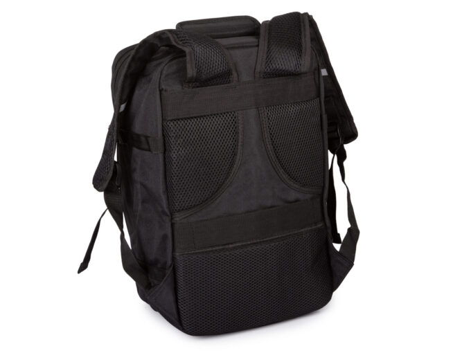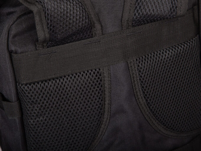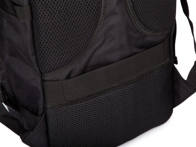 - Tył plecaka, oraz szelki wyłożono grubą, miękką pianką z siateczką zwiększającą komfort noszenia.
