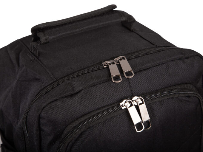 - Komora główna zapinana dookoła na mocny zamek błyskawiczny z metalowymi pullerami.