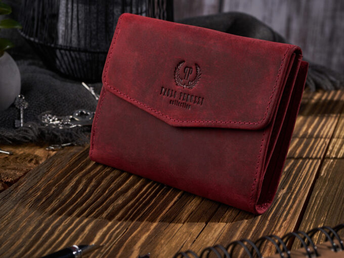 Średniej wielkości czerwony portfel damski z surowej skóry naturalnej w stylu vintage Paolo Peruzzi