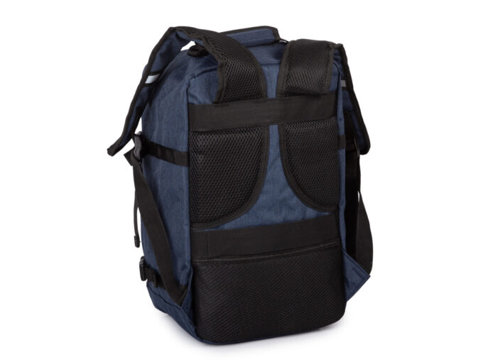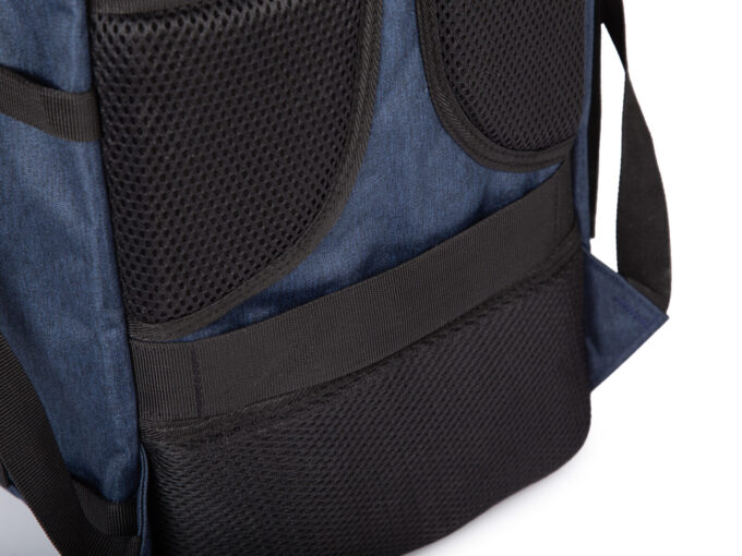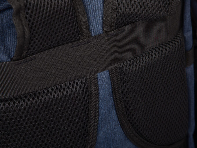 - Tył plecaka, oraz szelki wyłożono grubą, miękką pianką z siateczką zwiększającą komfort noszenia.