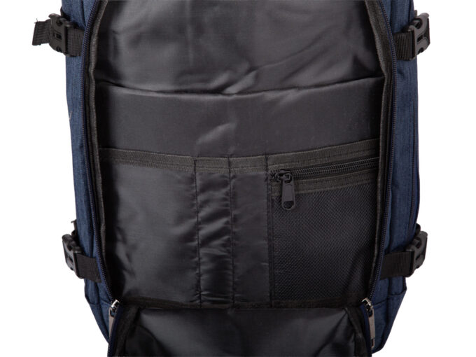 - Wewnątrz głównej komory można umieścić np. ubrania, jest wygodnie zapinana i zamykana podobnie jak walizka – po odpięciu zamka otwiera się pełny dostęp do całego wnętrza.