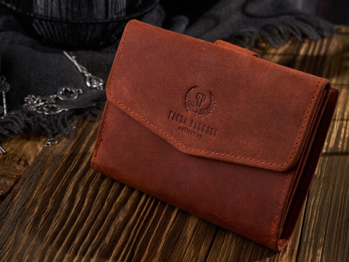 Średniej wielkości jasnobrązowy portfel damski z surowej skóry naturalnej w stylu vintage Paolo Peruzzi