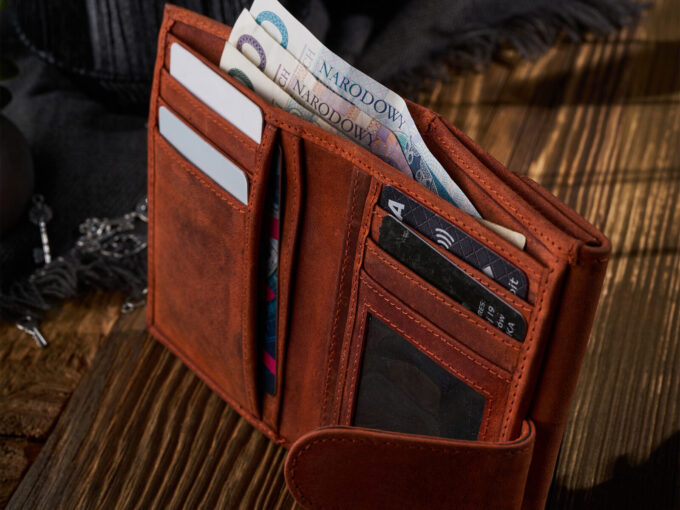- Portfel posiada ochronę kart zbliżeniowych RFID.