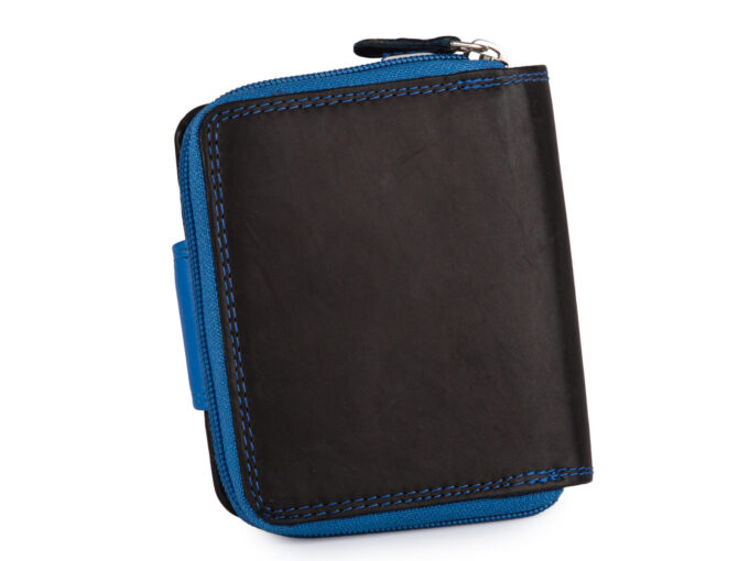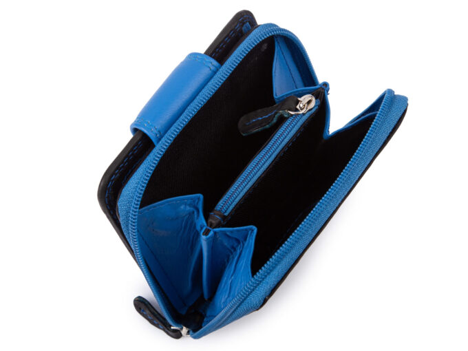 - Średniej wielkości, skórzany portfel damski czarno-niebieski