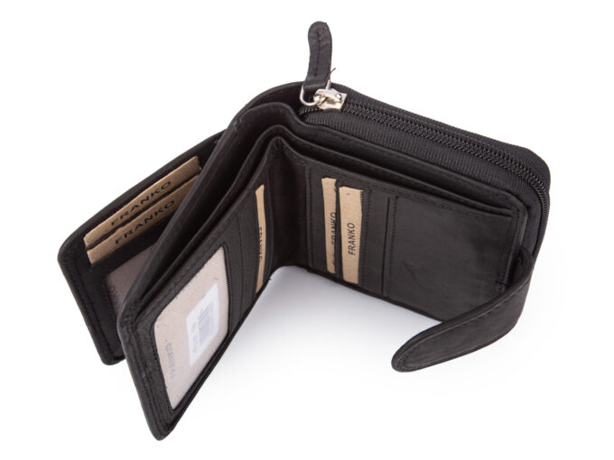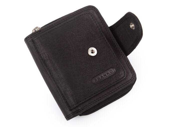 Średniej wielkości, skórzany portfel damski czarny Franko