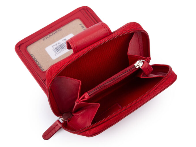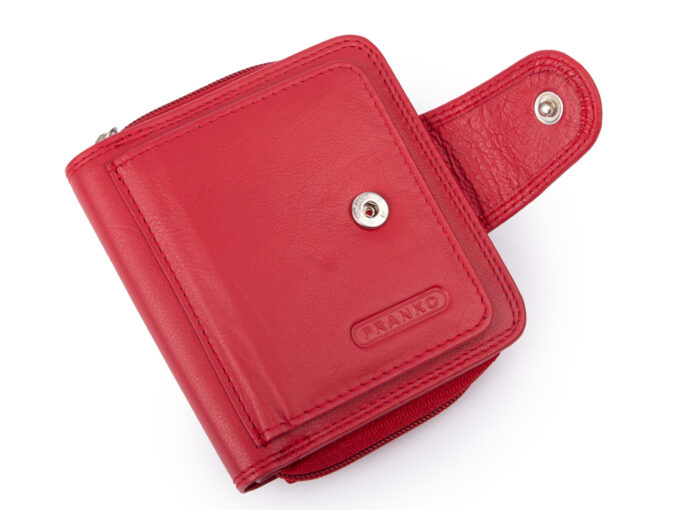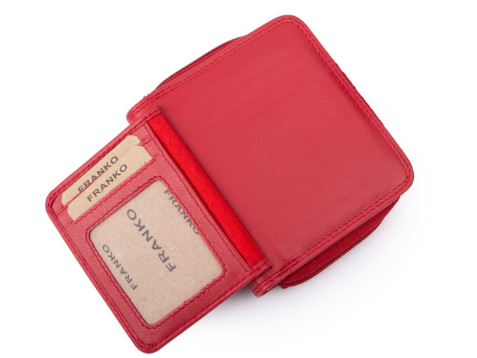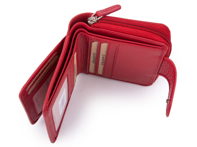 Średniej wielkości, skórzany portfel damski czerwony Franko