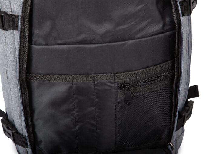 - Wewnątrz głównej komory można umieścić np. ubrania, jest wygodnie zapinana i zamykana podobnie jak walizka – po odpięciu zamka otwiera się pełny dostęp do całego wnętrza.