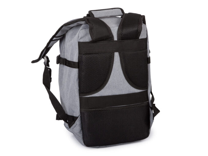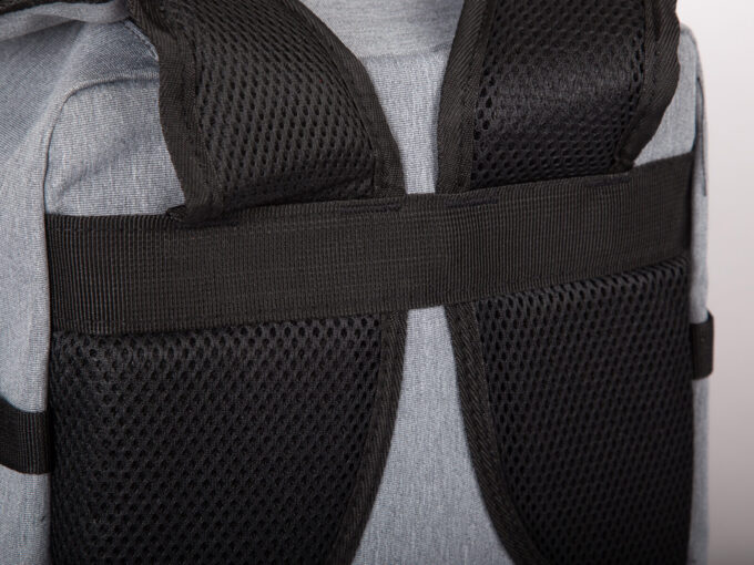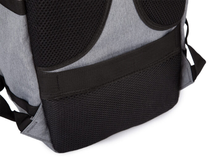 - Tył plecaka, oraz szelki wyłożono grubą, miękką pianką z siateczką zwiększającą komfort noszenia.