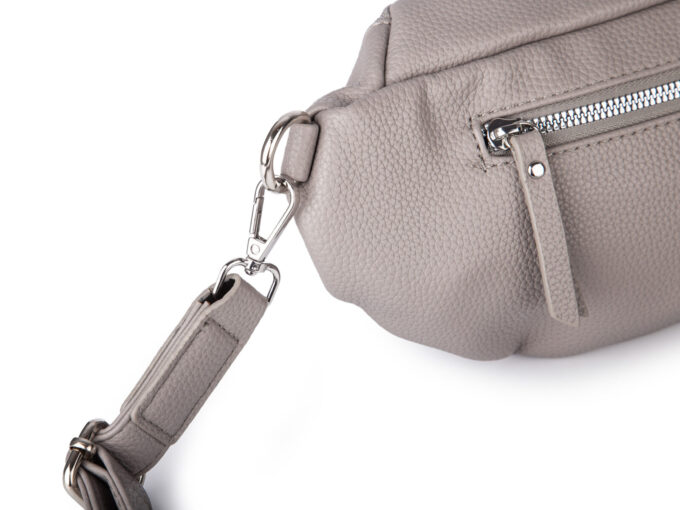 Szara, duża i elegancka saszetka damska typu nerka z paskiem na ramię