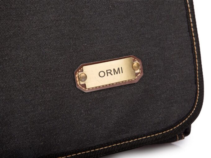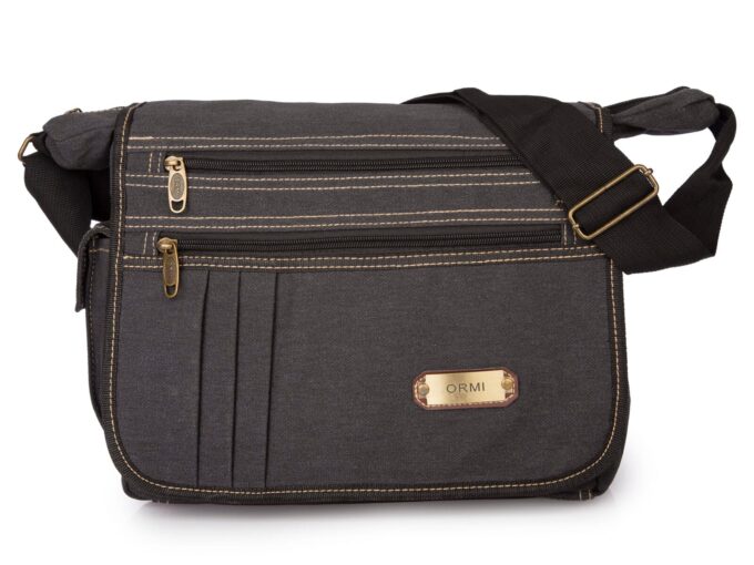- Ciemnoszara, materiałowa torba męska na ramię z klapą OR&MI.