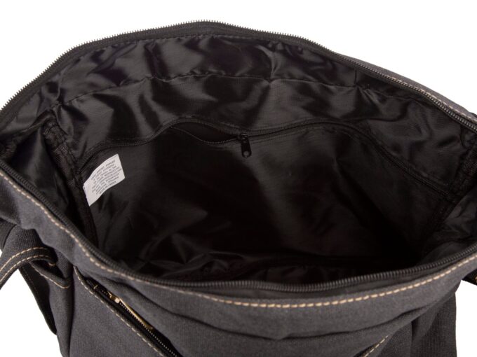 - Wnętrze torby wyłożono łatwą w utrzymaniu w czystości poliestrową podszewką.