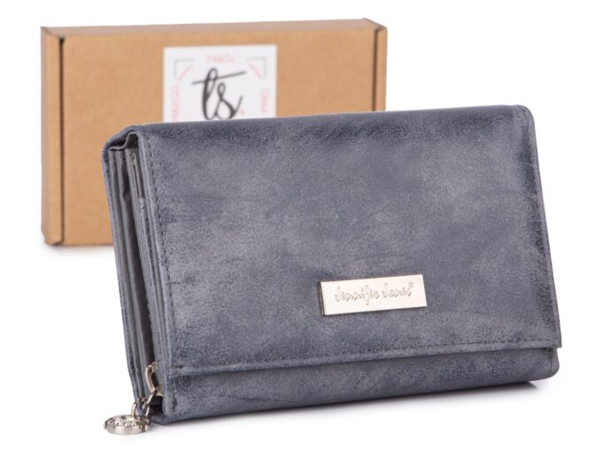 - Portmonetka damska w kolorze szarym, niemieckiej marki Jennifer Jones.