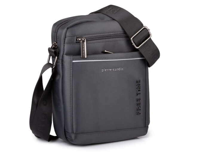 - Szara torba męska na ramię renomowanej marki Pierre Cardin w wygodnym, średnim rozmiarze, idealna na co dzień.
