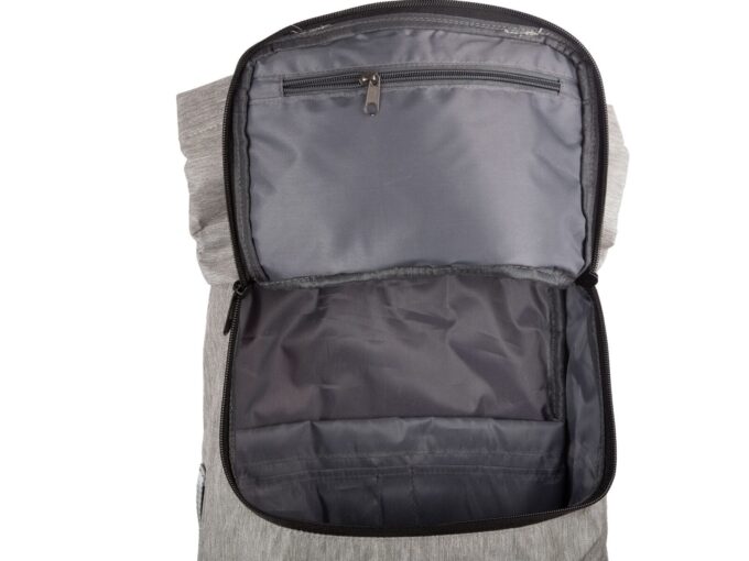 - Wewnątrz głównej komory znajduje się przegródka wzmocniona miękką pianką dystansową tworząc kieszeń na np. laptopa o przekątnej ekranu do 15.6″ cala.