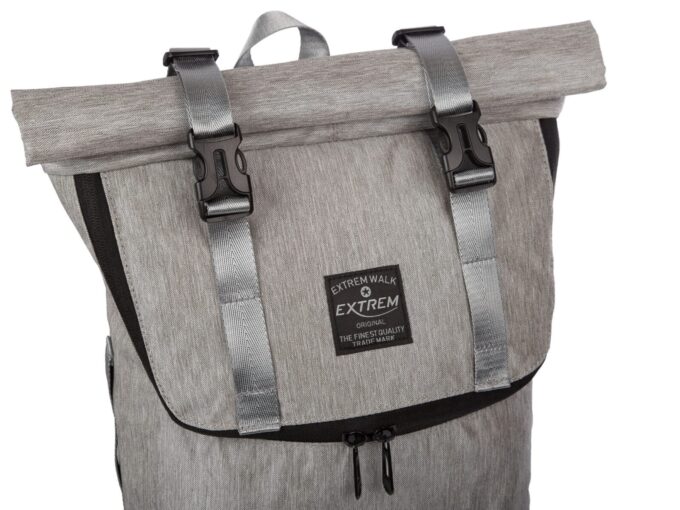 Szary plecak na wycieczkę ze zwijanym kołnierzem Extrem