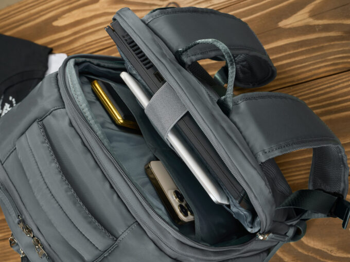 - Mautka kieszonka antykradzieżowa, zapinana na zamek błyskawiczny, przeznaczona na najcenniejsze przedmioty, umieszczona jest z tyłu plecaka, dzięki temu dostęp do niej bez naszej wiedzy jest mocno utrudniony.