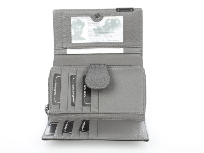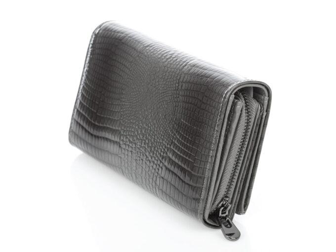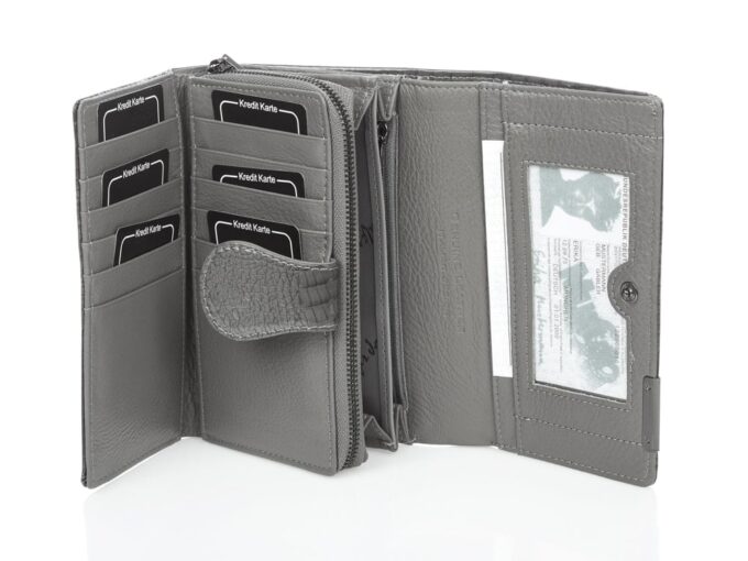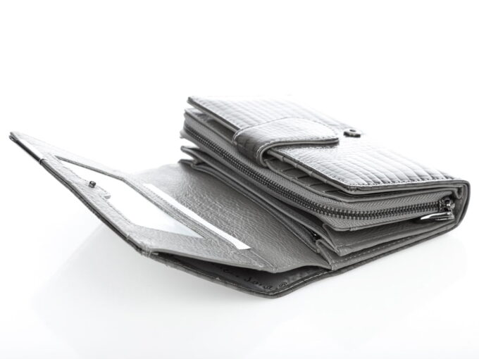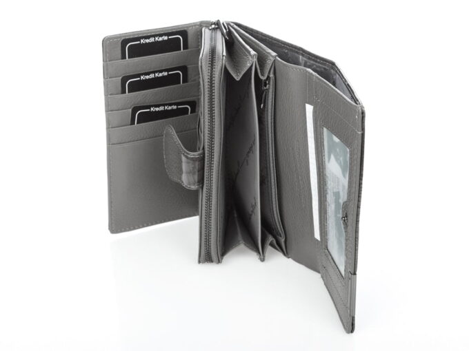 - Portfel zapinany na mocny, metalowy zatrzask.