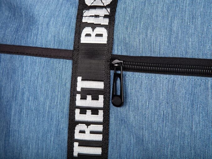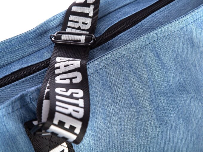 - Dwa długie i regulowane uchwyty wykonane z szerokiej i mocnej taśmy z odblaskowymi napisami z nazwą marki Bag Street. Uchwyty mają wysokość regulowaną w zakresie 13-33 cm co pozwala na wygodne noszenie torby w dłoni bez „szorowania” po ziemi. W razie potrzeby możemy uchwyty wydłużyć i nieść torbę zawieszoną na ramieniu.