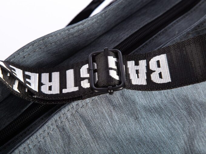 - Dwa długie i regulowane uchwyty wykonane z szerokiej i mocnej taśmy z odblaskowymi napisami z nazwą marki Bag Street. Uchwyty mają wysokość regulowaną w zakresie 13-33 cm co pozwala na wygodne noszenie torby w dłoni bez „szorowania” po ziemi. W razie potrzeby możemy uchwyty wydłużyć i nieść torbę zawieszoną na ramieniu.
