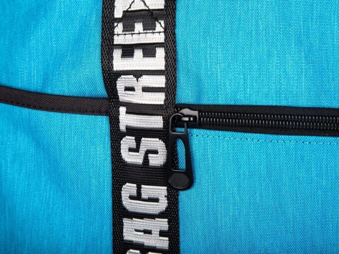 - Dwa długie i regulowane uchwyty wykonane z szerokiej i mocnej taśmy z odblaskowymi napisami z nazwą marki Bag Street. Uchwyty mają wysokość regulowaną w zakresie 13-33 cm co pozwala na wygodne noszenie torby w dłoni bez „szorowania” po ziemi. W razie potrzeby możemy uchwyty wydłużyć i nieść torbę zawieszoną na ramieniu.