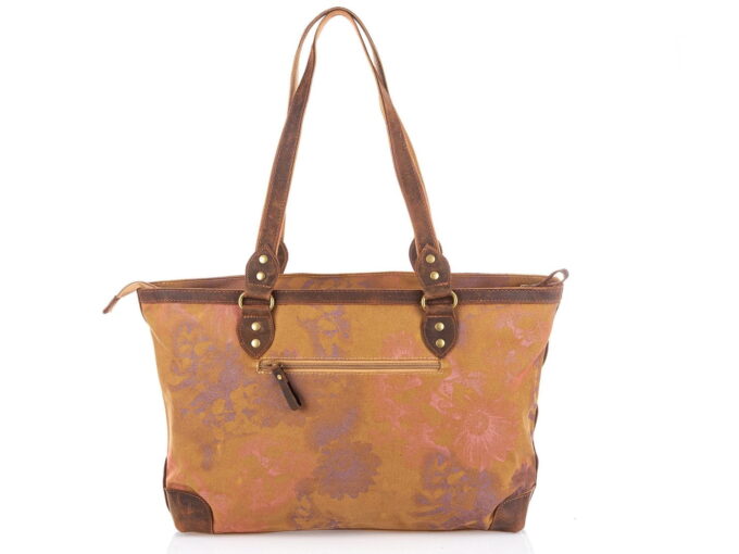 - Torba została wykonana z wytrzymałego płótna (canvas) połączonego ze wstawkami zrobionymi z grubej skóry naturalnej,