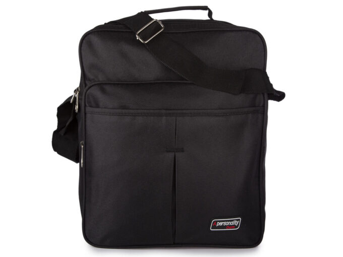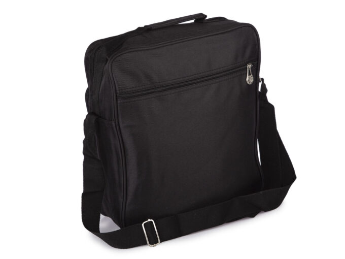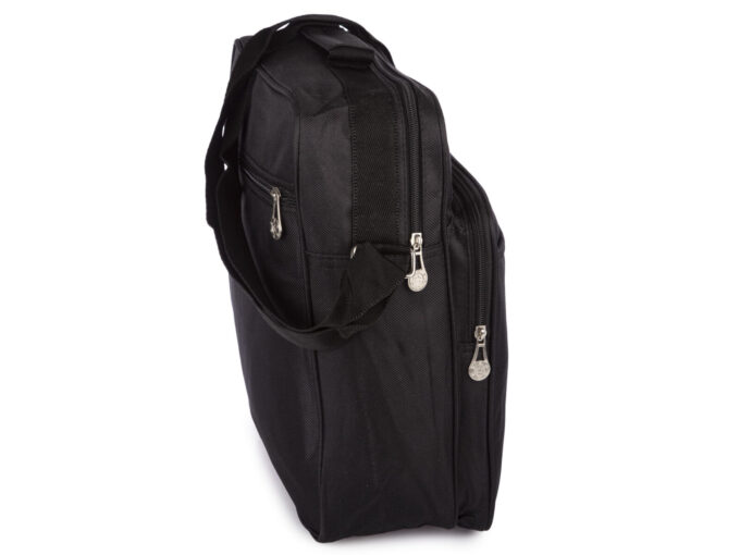 - Duża, pionowa torba męska robocza na ramię w kolorze czarnym.