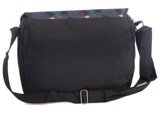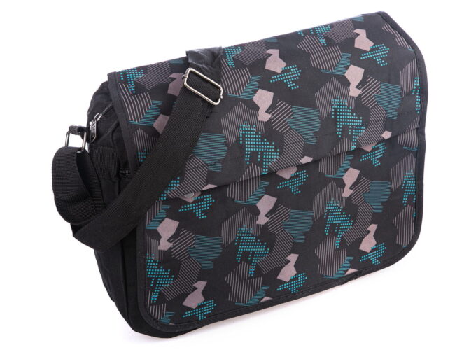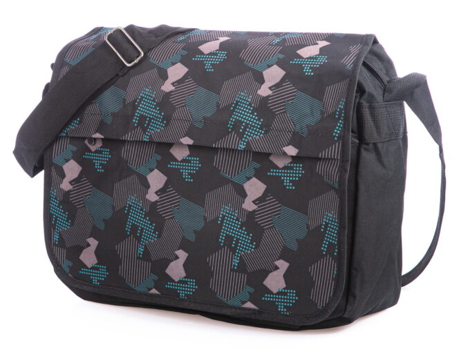 Cechuje ją przemyślana konstrukcja, która bez problemu pomieści dokumenty w formacie A4, drugie śniadanie, butelkę z wodą i wszelkie niezbędne na co dzień akcesoria. Wykonana została z gładkiego i przyjemnego w dotyku, odpornego na zabrudzenia poliestru z wewnętrzną, nieprzemakalną membraną, co gwarantuje długotrwałe i bezproblemowe użytkowanie. Dodatkowo, klapka torby ozdobiona jest oryginalnymi wzorami w kolorach niebieskim, szarym i czarnym, dodającym jej unikalnego charakteru.