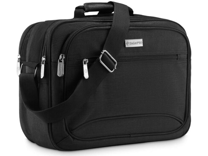 Dwukomorowa czarna torba na laptopa 15.6″ Zagatto