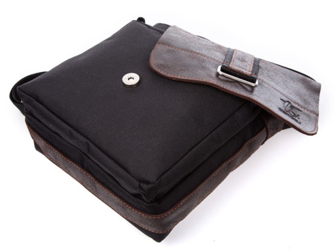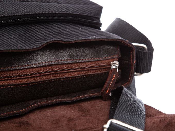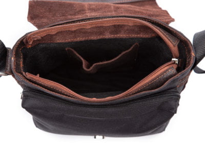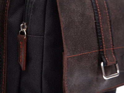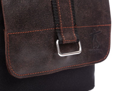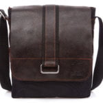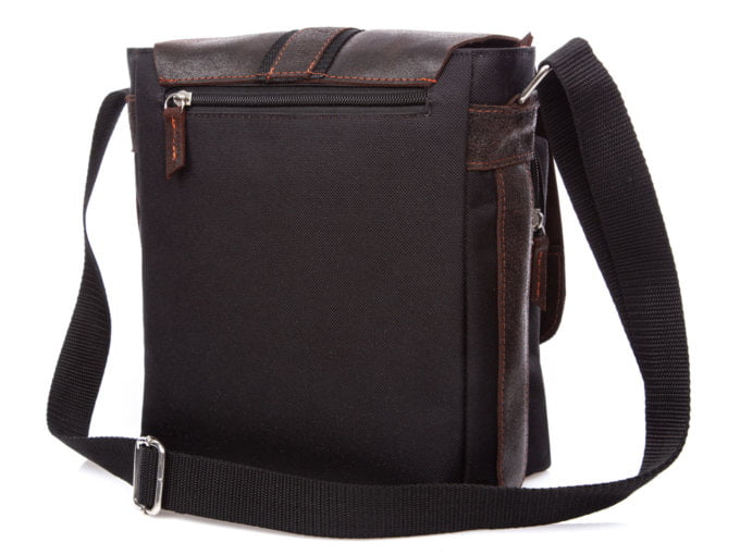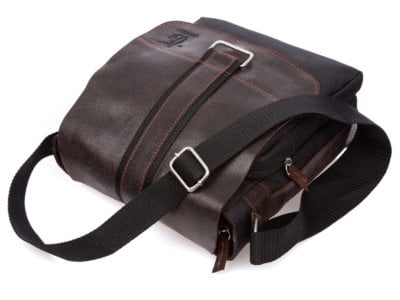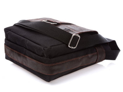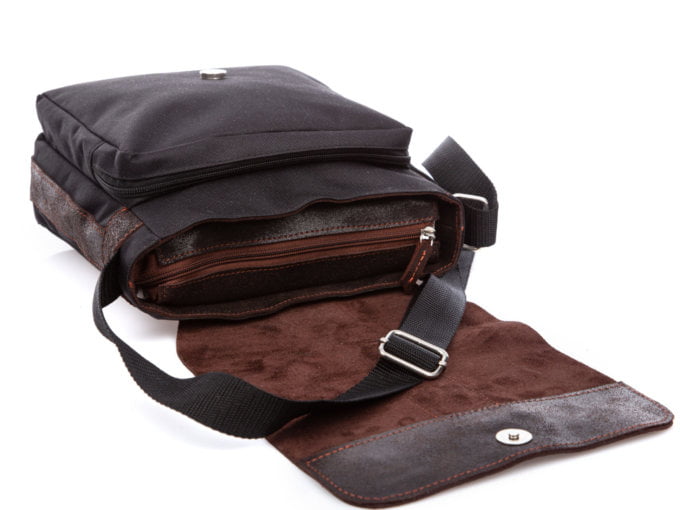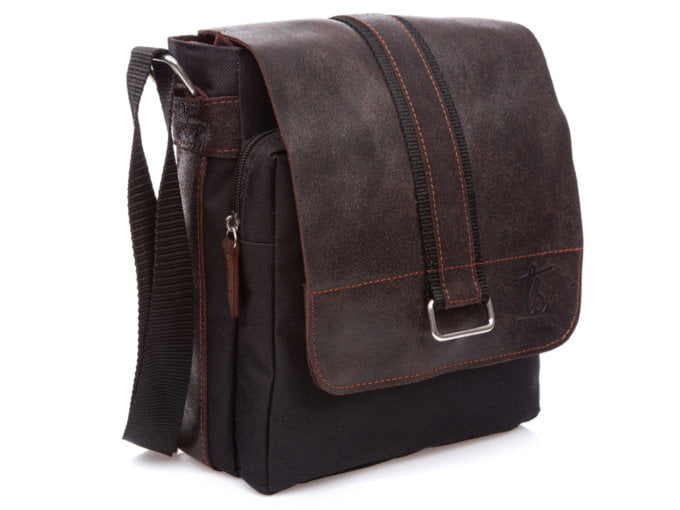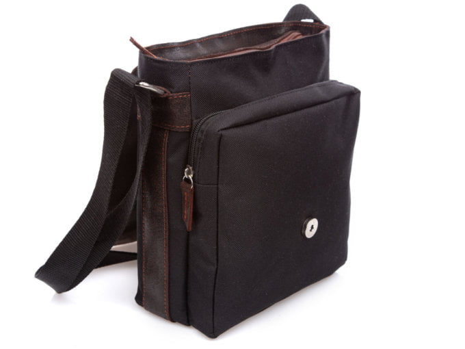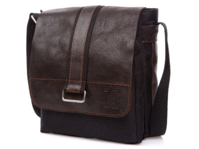 Torba męska na ramię ze skórzaną klapą ciemny brąz SERGEJ