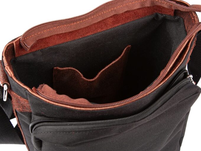 - Wewnątrz torby umieszczono skórzaną kieszonkę na telefon komórkowy.