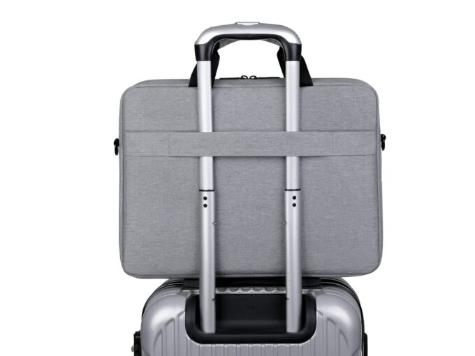 - Z tyłu, torba posiada mocowanie do uchwytu walizki podróżnej.