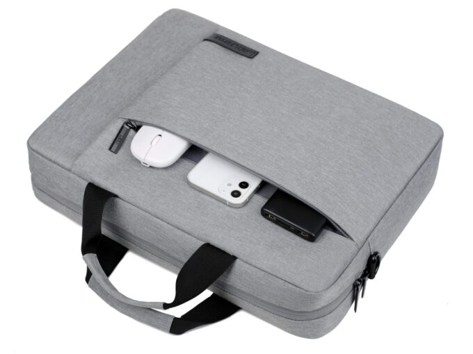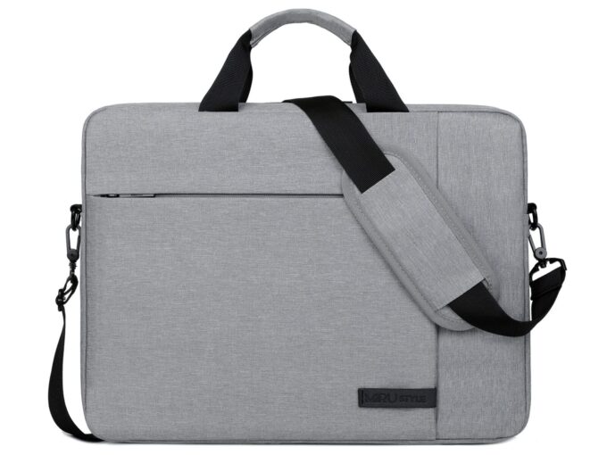 - Elegancka, szara torba na laptopa o przekatnej 15.6″ cala polskiej marki MIRU.