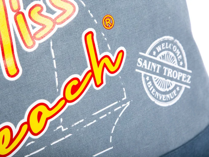 - Z przodu torby znajdują się napisy „Miss Beach”, oraz „Welcome Saint Tropez”.