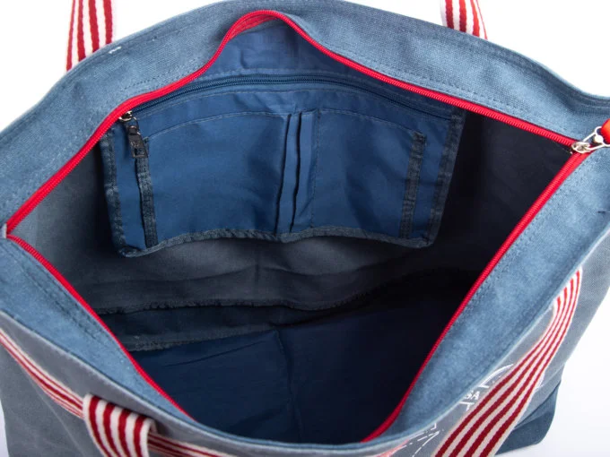 - Dół torby wzmocniony podwójną warstwą materiału, oraz od środka usztywniony.