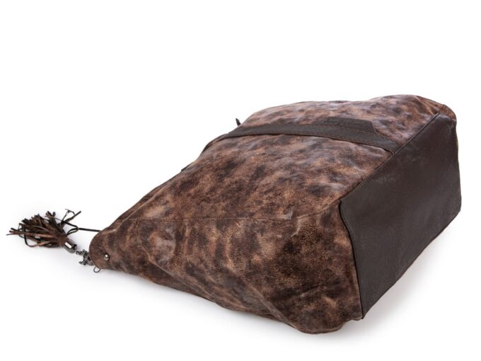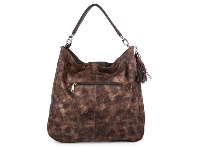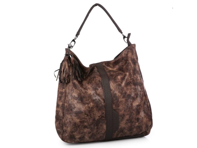 Torebka damska brązowa marmurkowa worek A4 elegancka do ręki Jennifer Jones