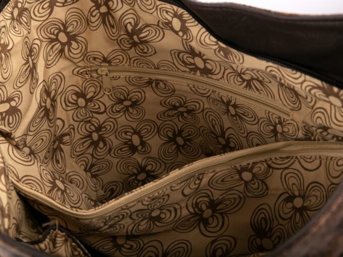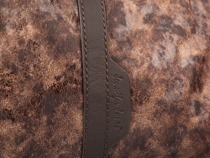 - Elegancka brązowa torba damska niemieckiej marki Jennifer Jones z cieniowanym, marmurkowym wzorem.
