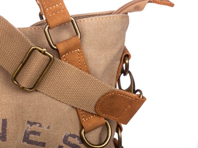 Torebka damska płócienna (canvas) ze skórą naturalną beżowa Harold’s