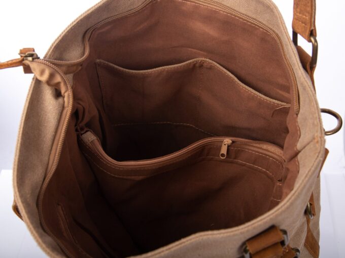 Torebka damska duża pionowa canvas (płótno) + skóra naturalna, beżowa