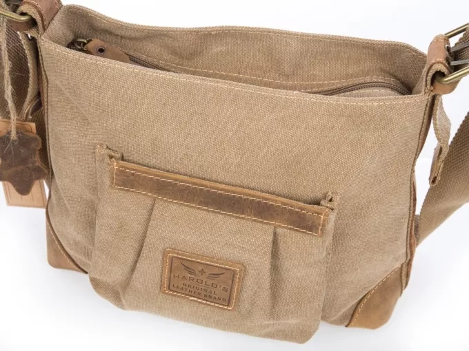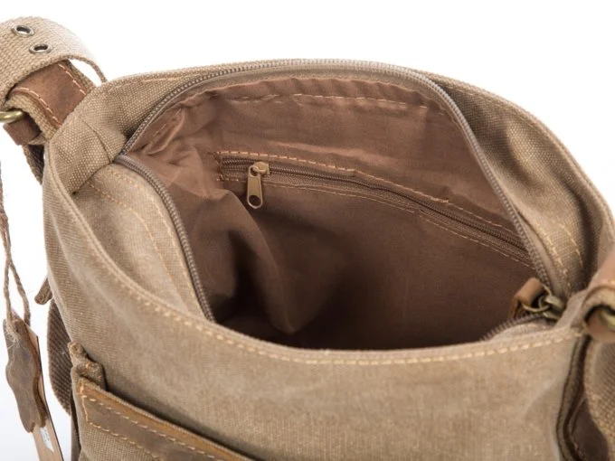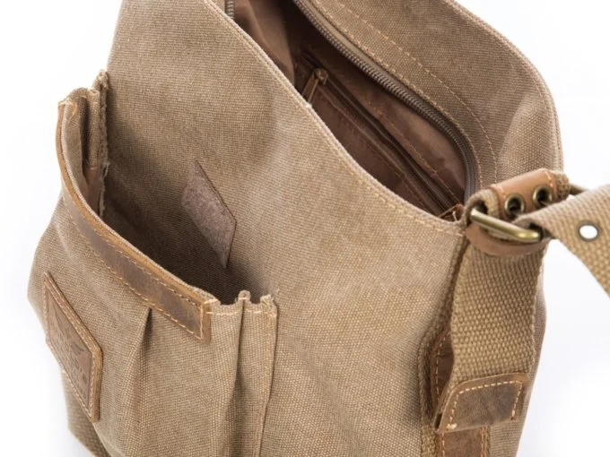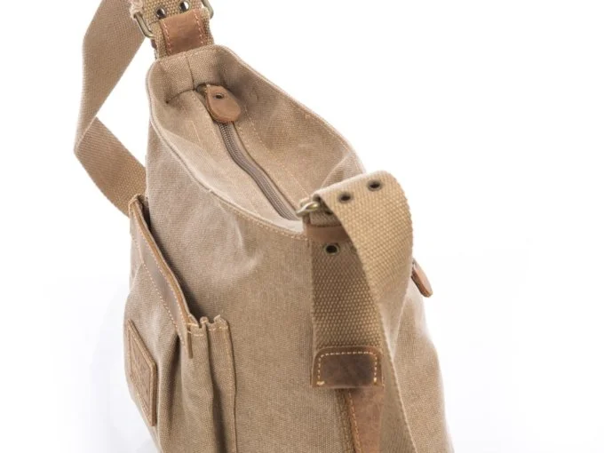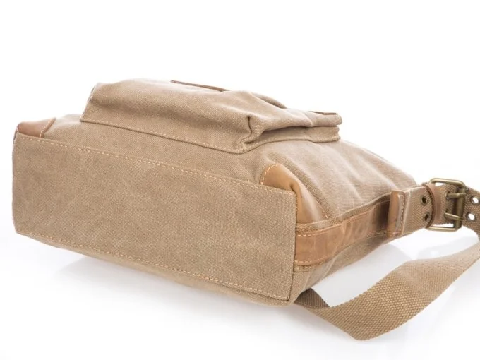 Torebka damska listonoszka z canvasu i skóry naturalnej beżowa
